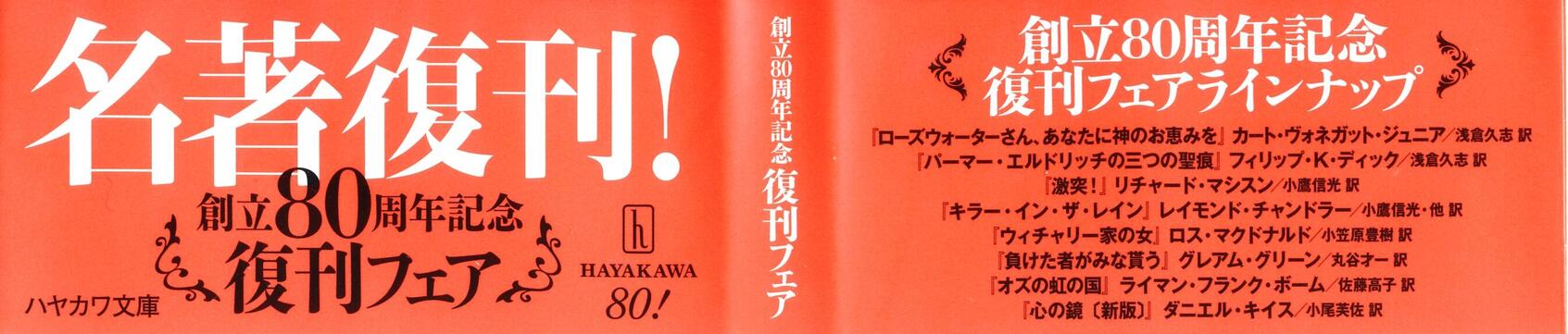 本書は、そもそも先月、この書店で発見しました。ながらく絶版だったものです。びっくりしました。復刊されていたのですね。早川書房の創立80周年記念復刊フェアで選ばれたとのこと。