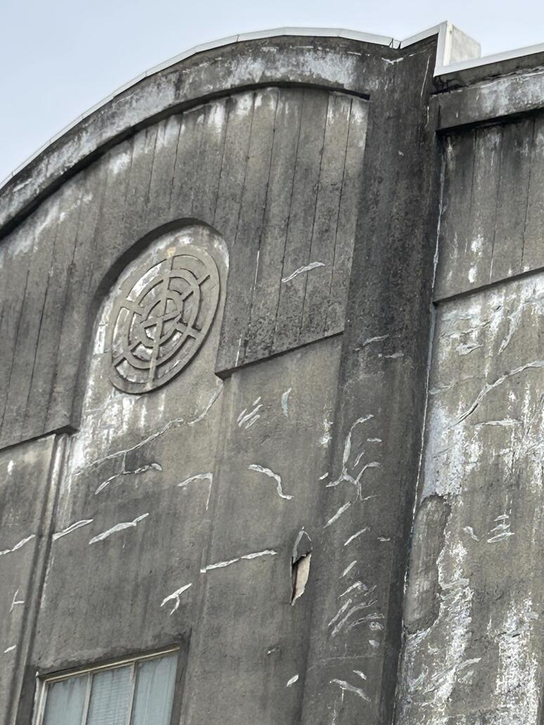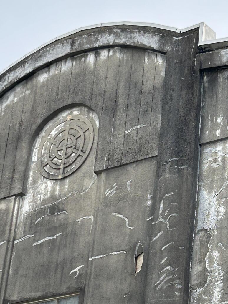 館林駅東口を出てすぐ右へ入る小道の先、左側になにやら古そうな倉庫。てっぺんの破風に見えるのは東武のロゴです。こりゃ古そうだぞと近寄ってみます。昭和の時代に駅舎脇、駅構内に見かけた変電施設ではないかな。