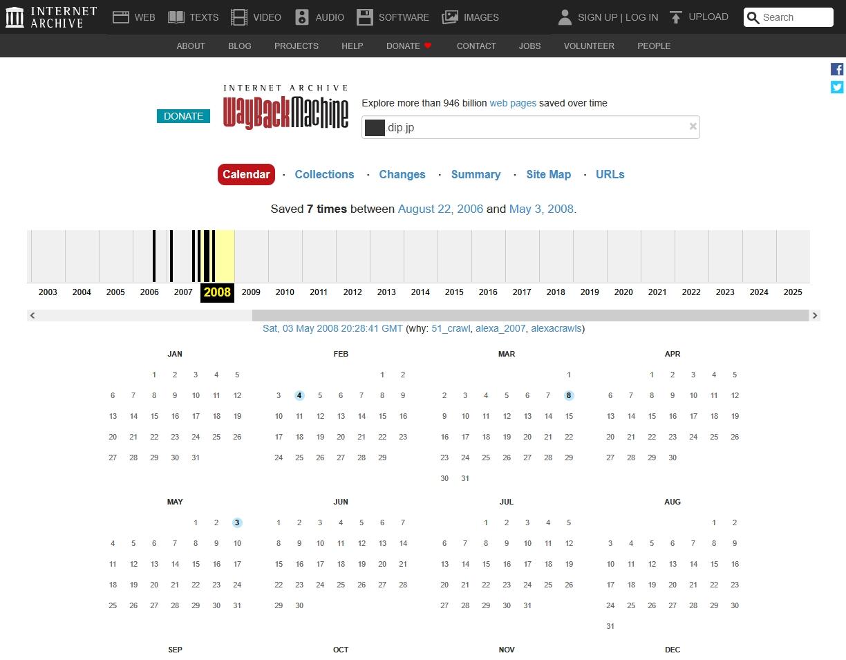 それにしても ウェイバックマシン(Wayback Machine)、すごいな。ほかに魚拓ってのもあったはず。