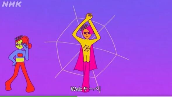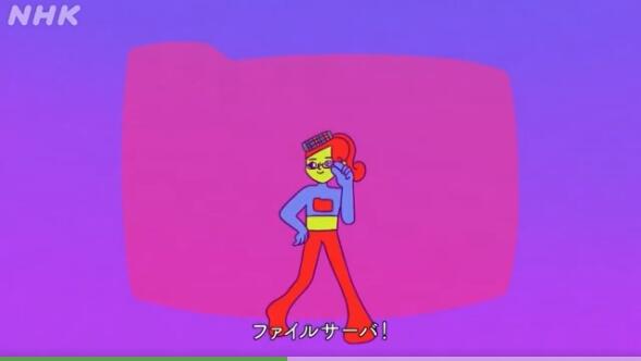 「こーんにーちはー! みんな、サーバって聞いたことあるよね? でも、どんなものか説明できるかな? ひとことで言うと『みんなにさまざまな機能を提供(ていきょう)するコンピュータ』たち。知ってるようで知らないサーバについて、サンバのリズムで歌っておどろう!」。♪見た目は四角い箱型コンピュータ だけど多機能じゃありません それぞれ得意なことの専門家(せんもんか) だからたがいに助け合って みんなに機能を提供する そ!れ!が! サーバ! サーバ・サンバ! たとえば君がスマホから やりたいことを"リクエスト" 「動画を見たい」「写真アップしたい」「メールとどけたい」 サーバがひとつひとつかなえてくれる みんなに機能を提供する そ!れ!が! サーバ! サーバ・サンバ♪